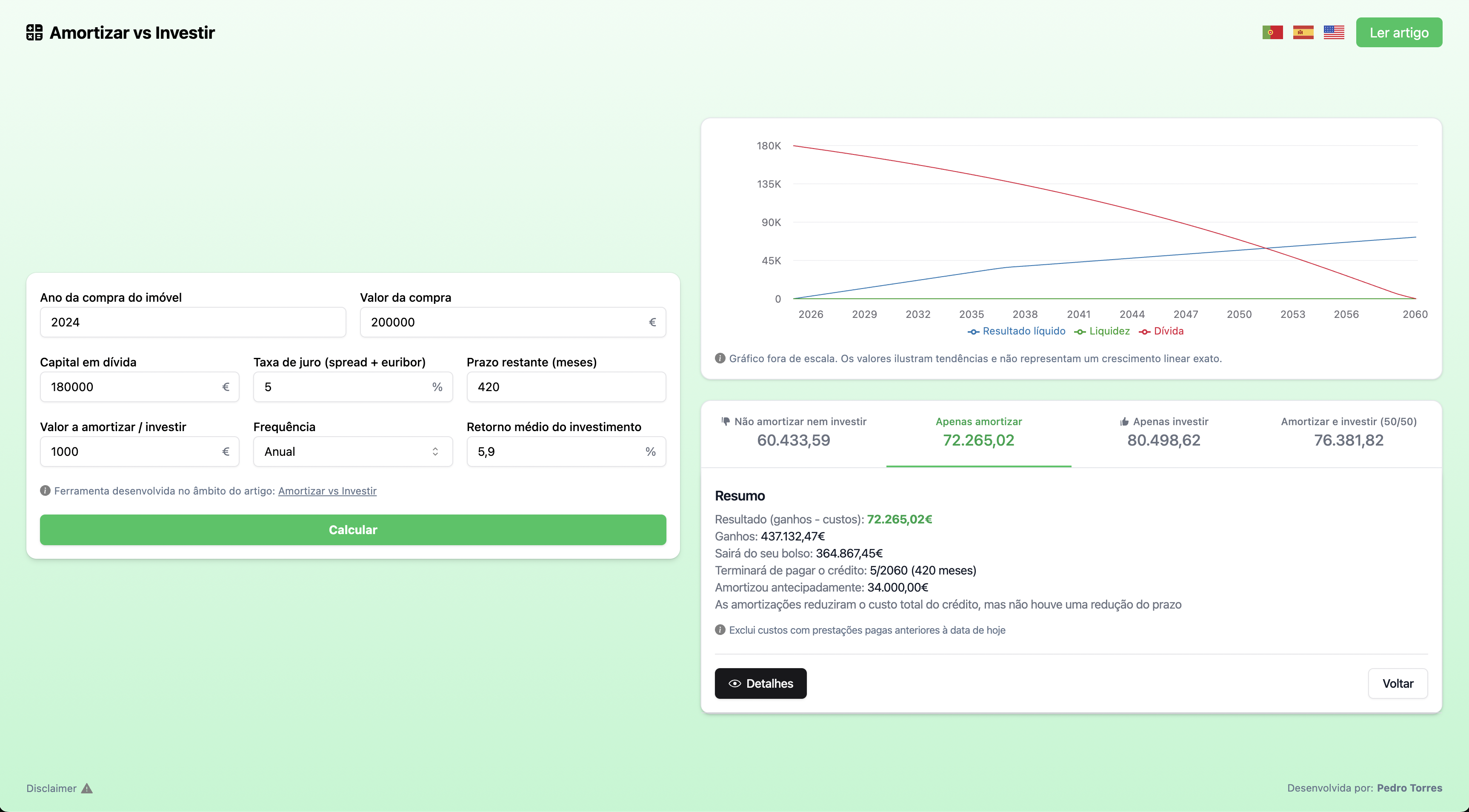 I built this calculator to help people compare different financial strategies: repaying a mortgage early, investing instead, or doing a 50/50 split. After writing an article exploring these scenarios, I realized that most finance advice often relies on generic assumptions that don’t reflect individual situations. This project allowed users to simulate real-world results based on their own data. The tool gained traction and received over 24,000 visits.